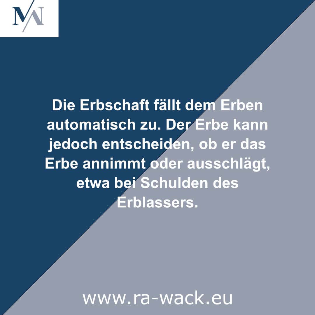 Damit steht dem Erbe der Entschluss frei, ob er die ihm angefallene Erbschaft annehmen oder ausschlagen will. Allerdings muss der Erbe seine Entscheidung möglichst bald treffen.